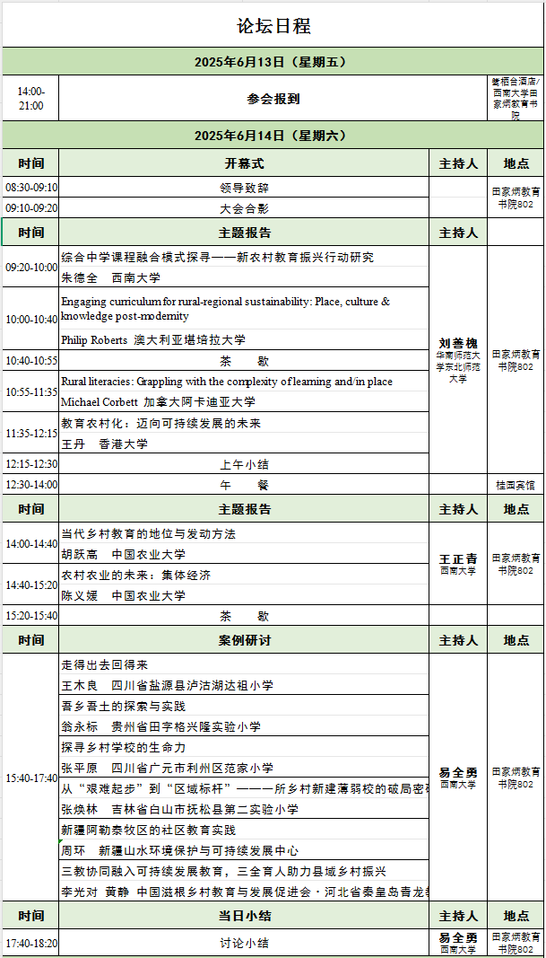 本次论坛设置主题演讲、案例研讨、平行论坛等环节,诚挚并热烈欢迎海内外农村教育与农村发展的研究者、实践者、以及各界人士的关注和参与。