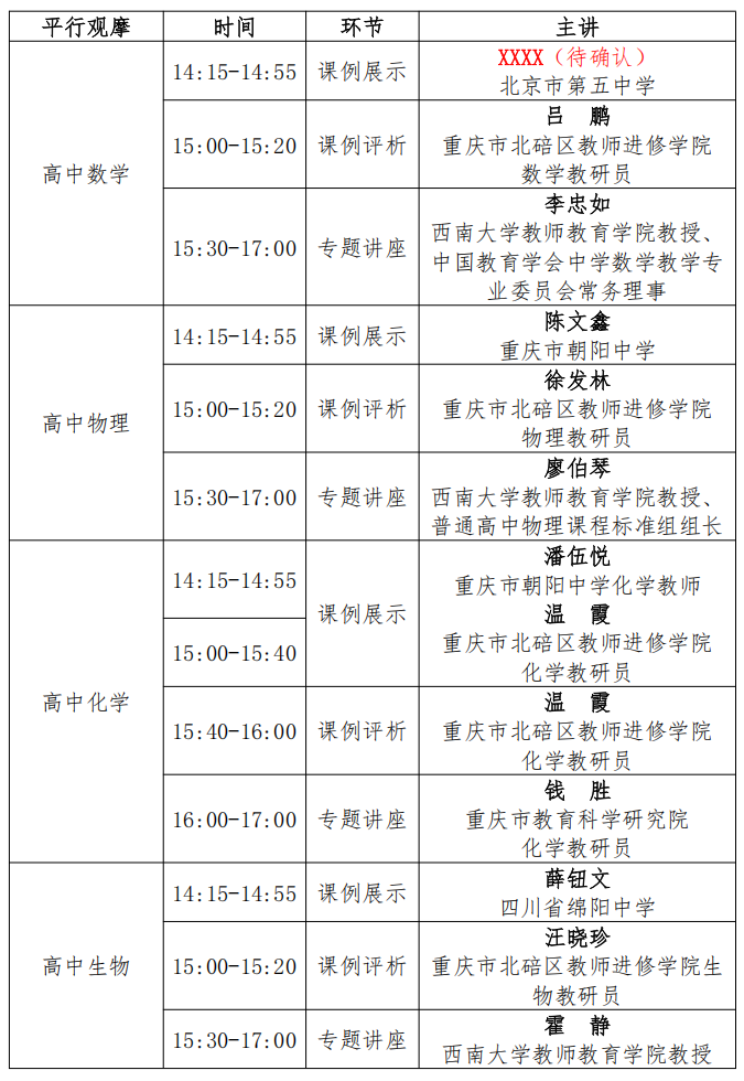 (四)重庆市内各级教育行政部门和各区县教研机构相关人员、重庆市普通高中书记、校长、副校长代表和高中数学、物理、化学、生物、地理、信息技术教师代表;