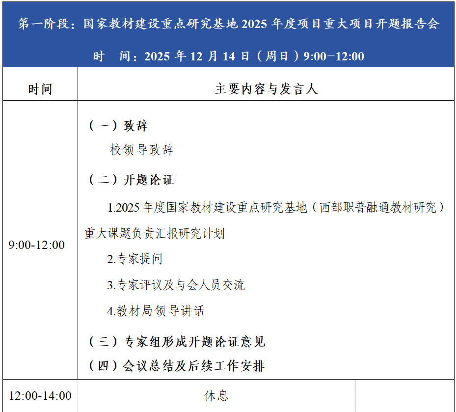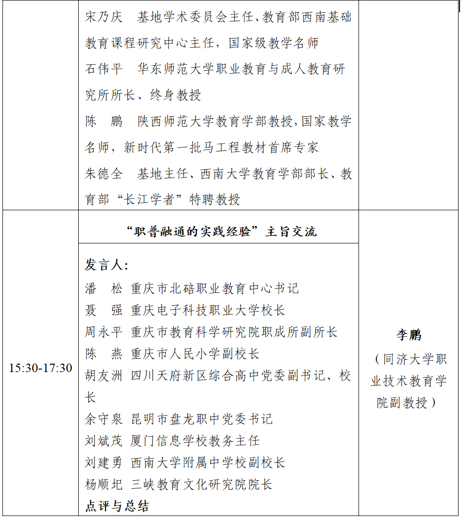 【会议通知】职普融通与教育高质量发展学术研讨会暨国家教材建设重点研究基地重大课题开题报告会议程