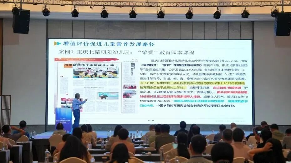 教育部西南基础教育课程研究中心主任,中国教育学会原副会长、西南大学原常务副校长、原西南师范大学校长、基地学术委员会主任宋乃庆教授,进行了《增值评价促进儿童素养发展》的学术报告,他认为,要立足《教育强国建设规划纲要》和《深化新时代教育评价改革总体方案》的战略部署,以增值评价为核心推动基础教育评价体系改革。增值评价通过追踪学生、学校及区域在不同时间点的发展增量,破除唯分数论的桎梏,树立科学育人观,推动因材施教和教育公平,并为教育决策提供科学依据。报告基于教育部《幼儿园教育指导纲要》,聚焦儿童在健康、语言、社会、科学、艺术五大领域的素养发展,依托课堂实践和技术赋能,建立过程性增值评估工具与反馈机制,提出了以立德树人为目标、以课堂教学为基础、以技术变革为支撑、以科学工具为保障、以诊断改进为关键的实施路径。