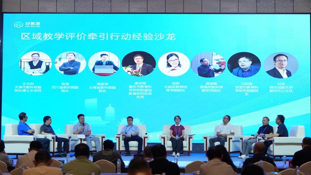 区域教学评价牵引行动经验沙龙环节,由成都大学期刊中心主任,二级教授刘涛主持。天津市教科院副院长、博士生导师王光明教授,四川省教科院副院长焦蒲博士,云南省教科院副院长周家荣教授,重庆市教育科学研究院。康世刚研究员,恩施州教科院院长龚道敏研究员,北碚区教师进修学院院长饶英研究员,宜昌市教育科学研究院副院长马明贵,分别围绕学科减负增效的评价施策路径、乡村教育特色评价体系构建、区域监测体系建设、学科命题改革与教师培训效果评价等五个议题,展开高密度、深交互的思想碰撞。