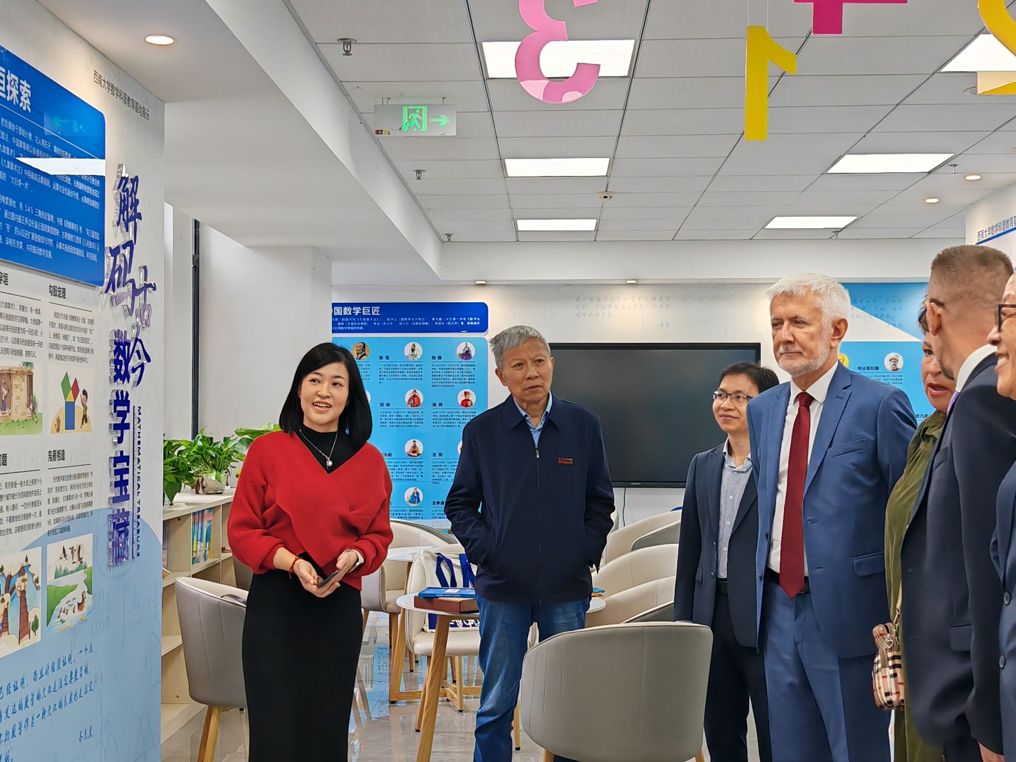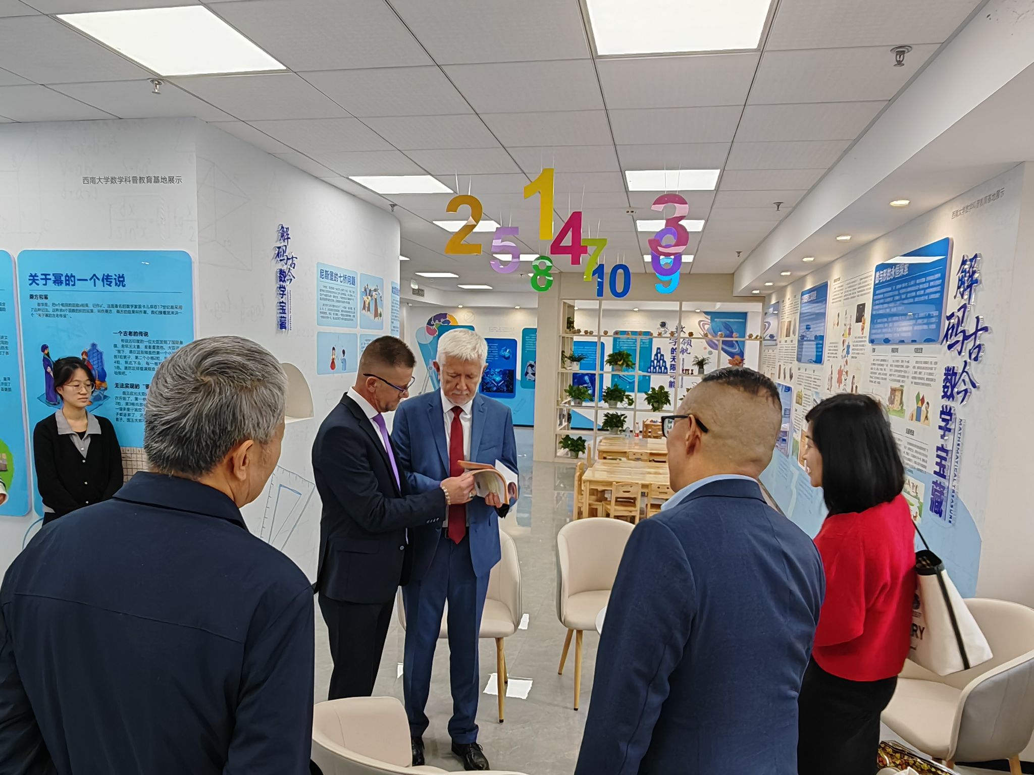 代表团一行还前往西南大学数学科普教育基地进行参观。基地将抽象的数学知识与生动的互动体验相结合,给俄方代表团留下了深刻印象。格鲁兹杰夫校长在体验了部分互动展项后表示,这种寓教于乐的方式,能够极大地激发学习者对基础学科的兴趣,这对于培养学生的科学素养和创新思维至关重要,其成功经验对师范教育和基础教育都有很好的启发意义。