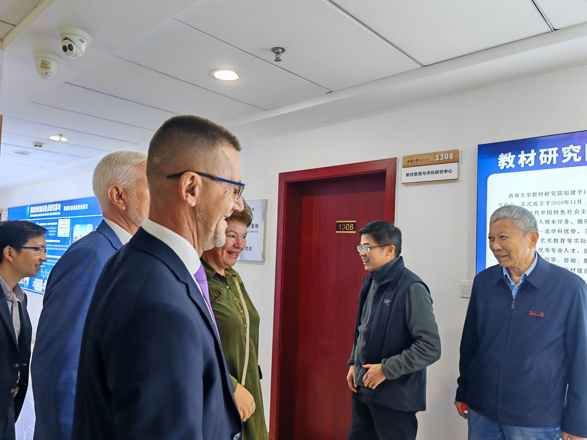 宋乃庆教授及张发钧董事长对格鲁兹杰夫校长一行的到来表示热烈欢迎,并邀请校长一行首先参观了国家教材基地,并系统介绍了基地近年来在学术研究、教材建设、科研创新及数据库建设等方面的成果。格鲁兹杰夫校长对基地的热情接待表示感谢,并高度评价了基地开展的一系列教材研究活动及取得的成果。